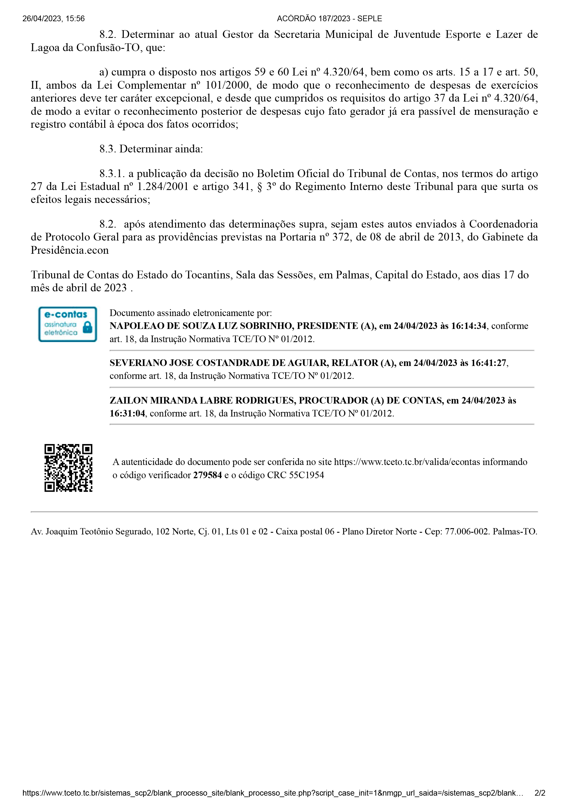 PODER LEGISLATIVO DE LAGOA DA CONFUSÃO - ESTADO DO TOCANTINS