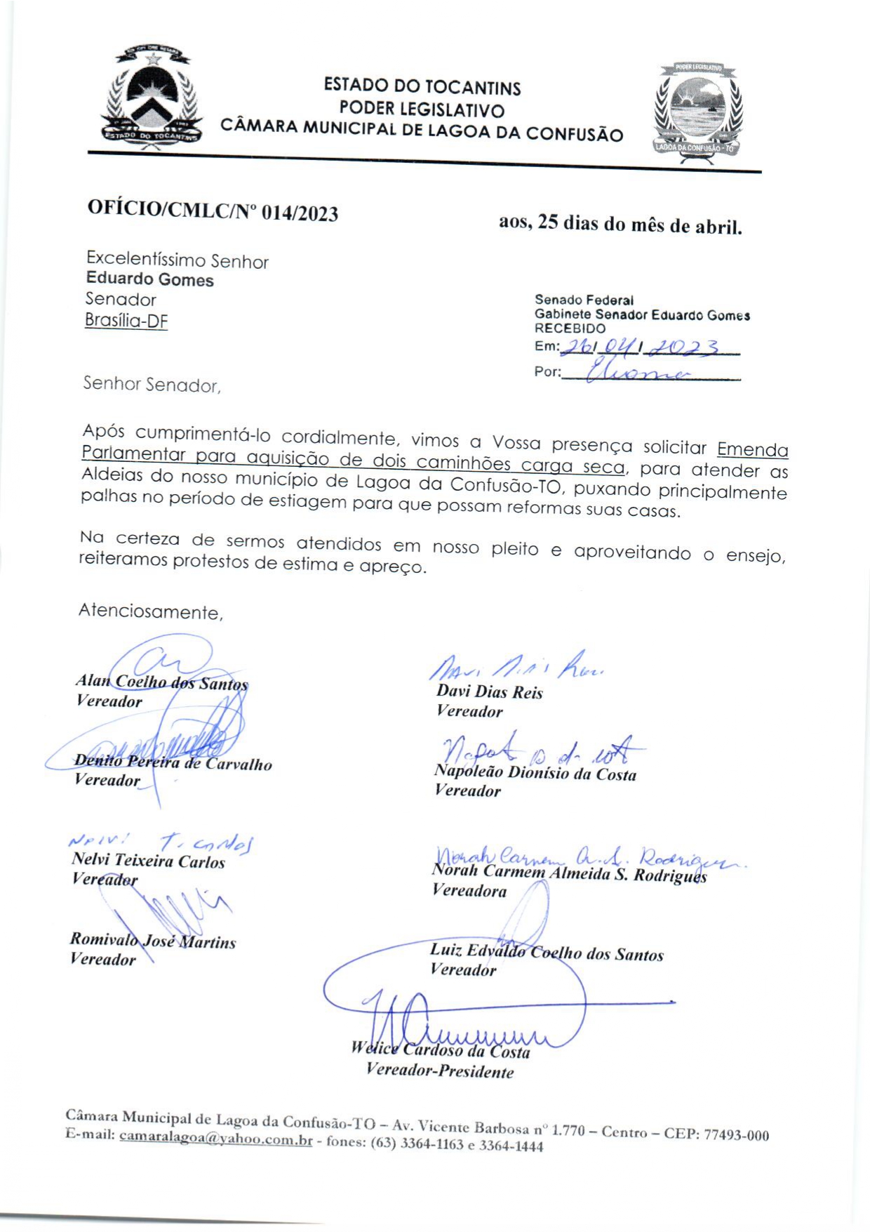 PODER LEGISLATIVO DE LAGOA DA CONFUSÃO - ESTADO DO TOCANTINS